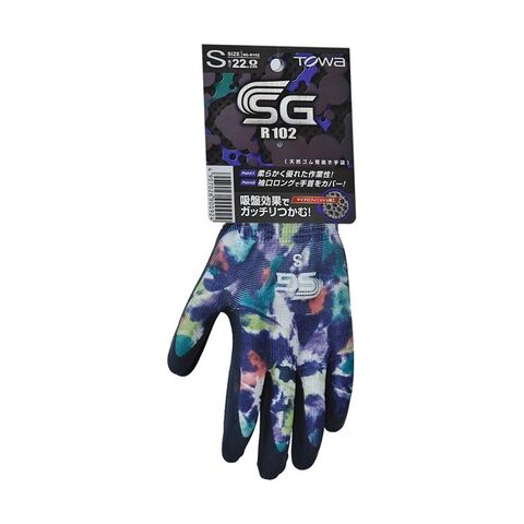 トワロン 天然ゴム背抜キ手袋 SG-R102 ボカシ柄ブルー S SG-R102-S 1双