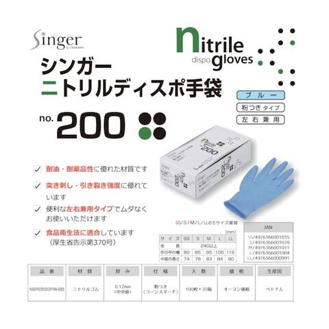 UCD シンガーニトリルディスポNo.200青粉付M(100枚入) 249 x 131 x 78 mm NBR0550PW-BB M 100枚