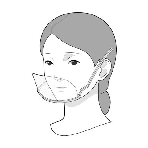 顔に挟むだけで気軽に使えるポップな透明マスクです。