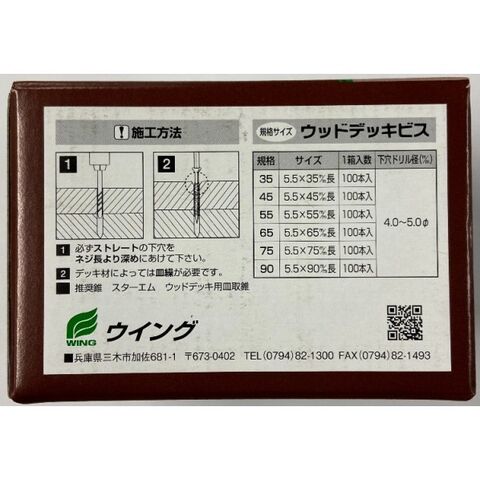 ウイング ウッドデッキビス(ステンレス)四角穴 5.5×65mm 焼ブロンズ 7894 100本