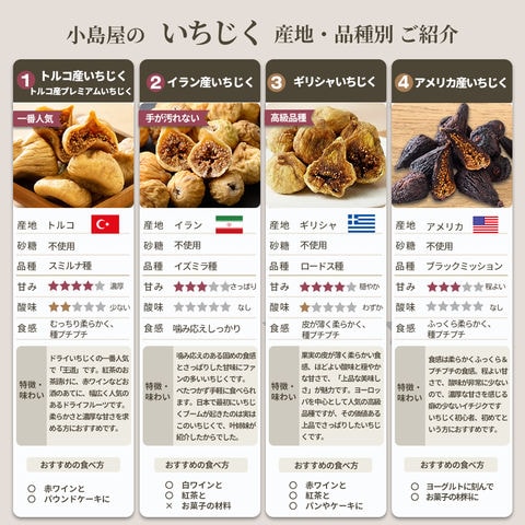 小島屋のイランいちじくには一切添加物が使用されておりません。