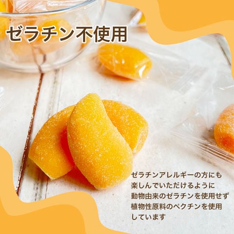 また、一般的なグミは動物由来の「ゼラチン」を使用したものが主流ですが、 こちらの商品はゼラチンを 一切使用せず、植物由来の「ペクチン」を使用しています。