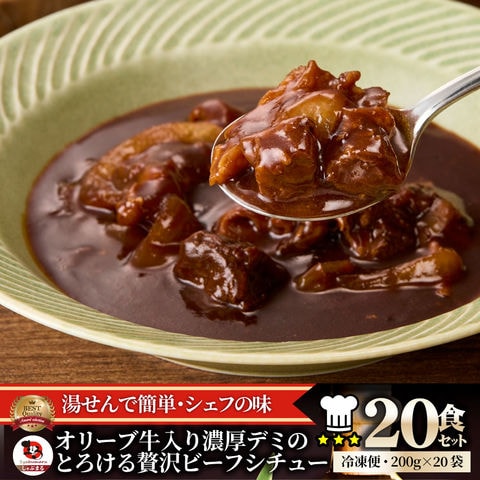 オリーブ牛入り 牛すじ ビーフシチュー 200g×20食セット 肉 牛肉 ギフト 食品 牛スジ アキレス デミグラスソース 温めるだけ レンジ 冷凍 惣菜