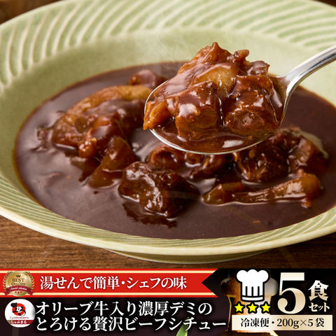 オリーブ牛入り 牛すじ ビーフシチュー 200g×5食セット 肉 牛肉 ギフト 食品 牛スジ アキレス デミグラスソース 温めるだけ レンジ 冷凍 惣菜