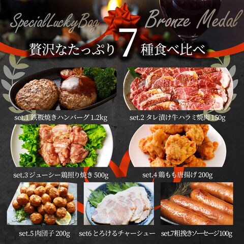 2025 肉 福袋 牛肉 食品 肉の福袋 銅メダル メガ盛り 総重量2.4kg超 焼くだけ&レンジで簡単調理!ランキング1位&人気のお肉豪華セット 焼肉 ハラミ