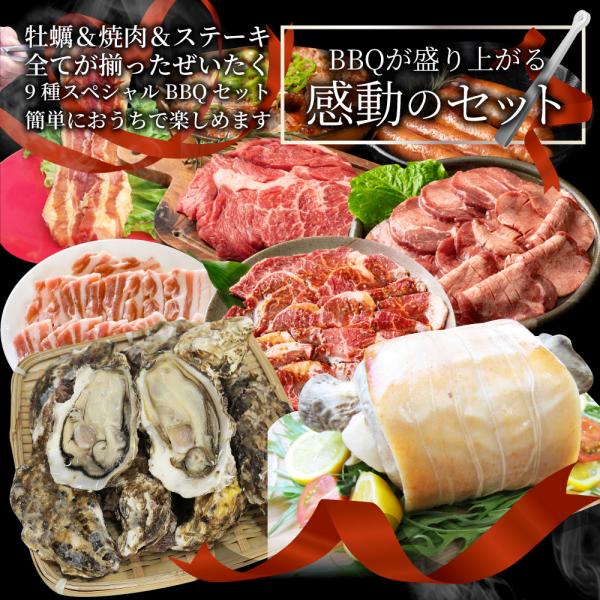 牡蠣焼き バーベキュー パーティー 焼肉 ステーキ セット 4.4kg 9種盛り 肉 海鮮 BBQ 殻付き牡蠣 ハラミ 牛タン 牛ハラミ 牛肉 魚 通販 グルメ アウトドア