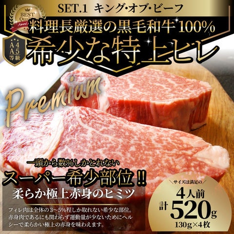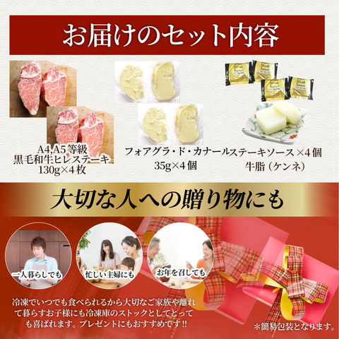 黒毛和牛 ヒレステーキ & フォアグラセット 4人前(ステーキ130g×4枚&フォアグラ4個)国産牛 A4,A5等級 ヒレステーキ 送料無料