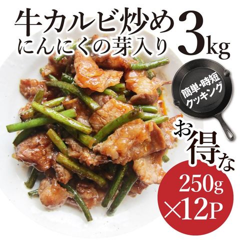 牛カルビ 炒め にんにくの芽入り BBQ味 3kg 250g×12P 炒めるだけ 簡単 時短 焼肉 牛肉 オードブル パーティー 冷凍 送料無料