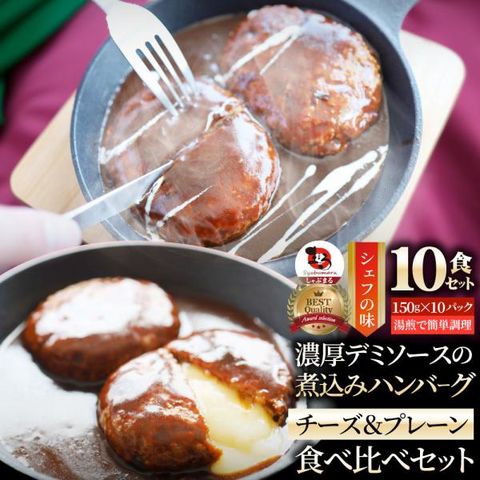 ハンバーグ & チーズイン 煮込みハンバーグ 食べ比べ 10食セット (150g×10パック) 冷凍 惣菜 洋食 プレーン ハンバーグ あすつく 業務用 温めるだけ 送料無料