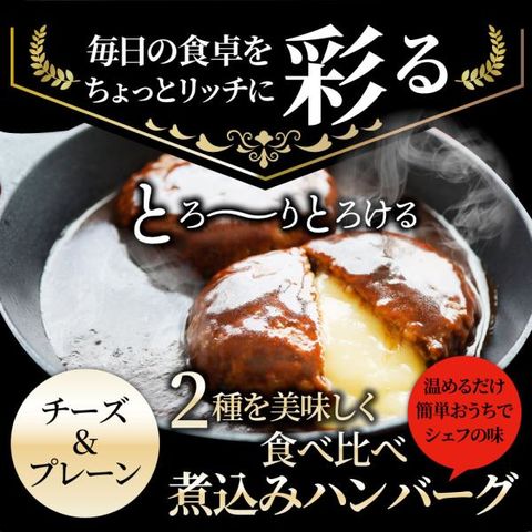 ハンバーグ & チーズイン 煮込みハンバーグ 食べ比べ 6食セット (150g×6パック) 冷凍 惣菜 洋食 プレーン ハンバーグ あすつく 業務用 温めるだけ 送料無料