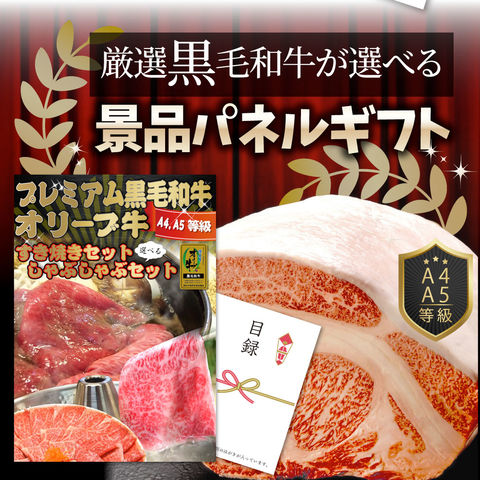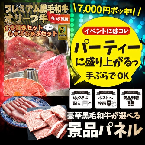 特選 黒毛和牛 目録食品 オリーブ牛 選べる すき焼き・しゃぶしゃぶ 7000円ポッキリ A4 パネル 目録付 2次会 景品 目録 お祝い ギフト お肉