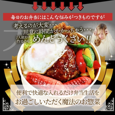| ◇原材料 | ・若鶏から揚げ 【ハンバーグ】鶏肉(国産)、たまねぎ(中国産)、粒状大豆たん白、つなぎ(パン粉、小麦粉、粉末状大豆たん白)、豚脂、食塩、砂糖、しょうゆ、揚げ油(大豆油)/調味料(アミノ酸)、リン酸塩(Na,K)、カラメル色素、(一部に小麦・乳成分・大豆・鶏肉・豚肉を含む) 【唐揚げ】鶏肉(もも肉)、植物油脂(大豆含む)、小麦粉、でん粉、食塩、卵白粉(卵を含む)、香辛料、しょうゆ、料理酒、粉末しょうゆ、砂糖、脱脂粉乳、ぶどう糖/加工デンプン、調味料(アミノ酸)、ポリリン酸Na、乳化剤、酸味料 【ウインナー】豚肉(メキシコ、スペイン、その他)、鶏肉、結着材料(でん粉、植物性たん白)、食塩、砂糖、香辛料/酸味料(アミノ酸等)、リン酸塩(Na、K)、くん液、保存料(ソルビン酸(K))、pH調整剤、着色料(コチニール、パプリカ色素、アナトー)、発色剤(亜硝酸Na)、(一部に小麦・卵・乳成分・牛肉・大豆・鶏肉・豚肉・ゼラチンを含む) でん粉含有率:10% |