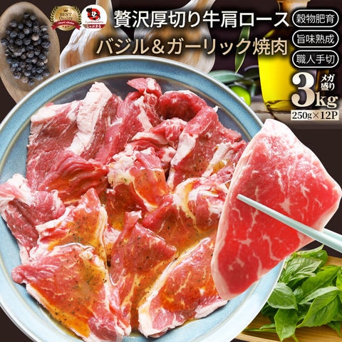 オーストラリア産 牛肩ロース バジル&ガーリック 焼肉 3kg(250g×12)赤身 贅沢 タレ漬け オージー 牛肉 焼くだけ バジル ガーリック レジャー BBQ 爆買