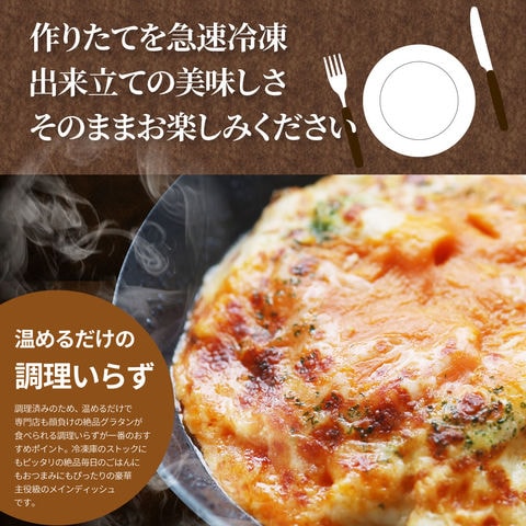 調理方法 凍ったままのグラタンを袋から取り出し、ラップをはずして温めてください。