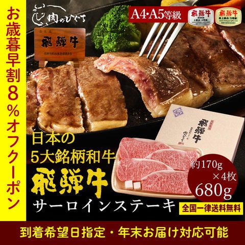 【 A4-A5等級 飛騨牛 サーロイン ステーキ 170g×4枚 化粧箱入 ソース付 全国一律送料無料】 肉 ギフト 精肉 精肉ギフト 内祝 御礼 銘柄和牛 黒毛和牛 ぽっきり hrp