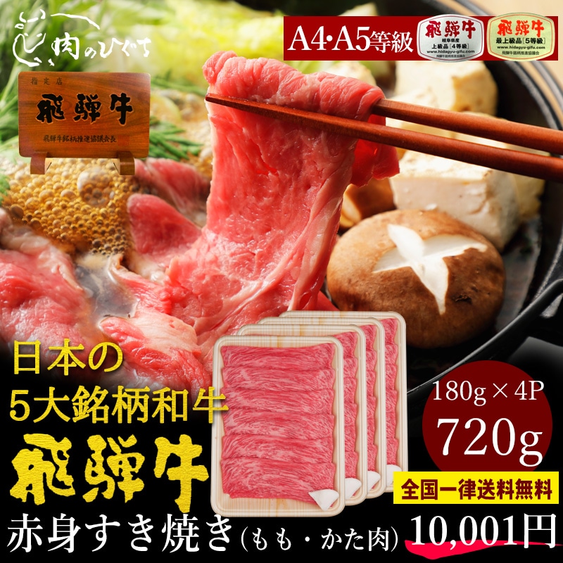 【冷凍】飛騨牛 A4 A5等級 もも・かた肉 すき焼き 720g (180g×4P) 送料無料 鍋 肉 牛肉 黒毛和牛 高級 赤身肉 帰省土産 年末 御歳暮
