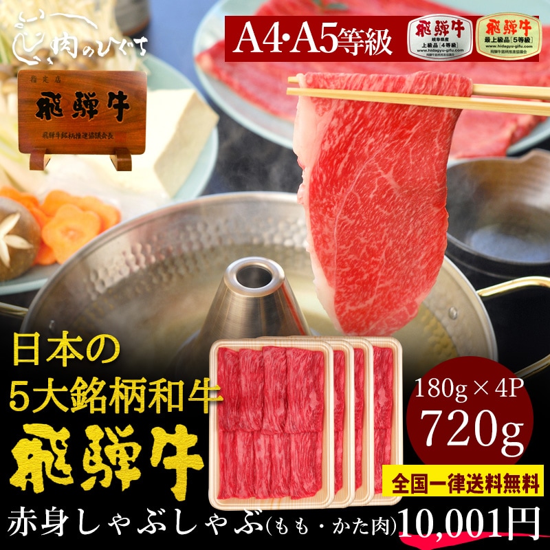 【冷凍】飛騨牛 A4 A5等級 もも・かた肉 しゃぶしゃぶ 720g (180g×4P) 送料無料 鍋 肉 牛肉 黒毛和牛 高級 赤身肉 帰省土産 年末 御歳暮