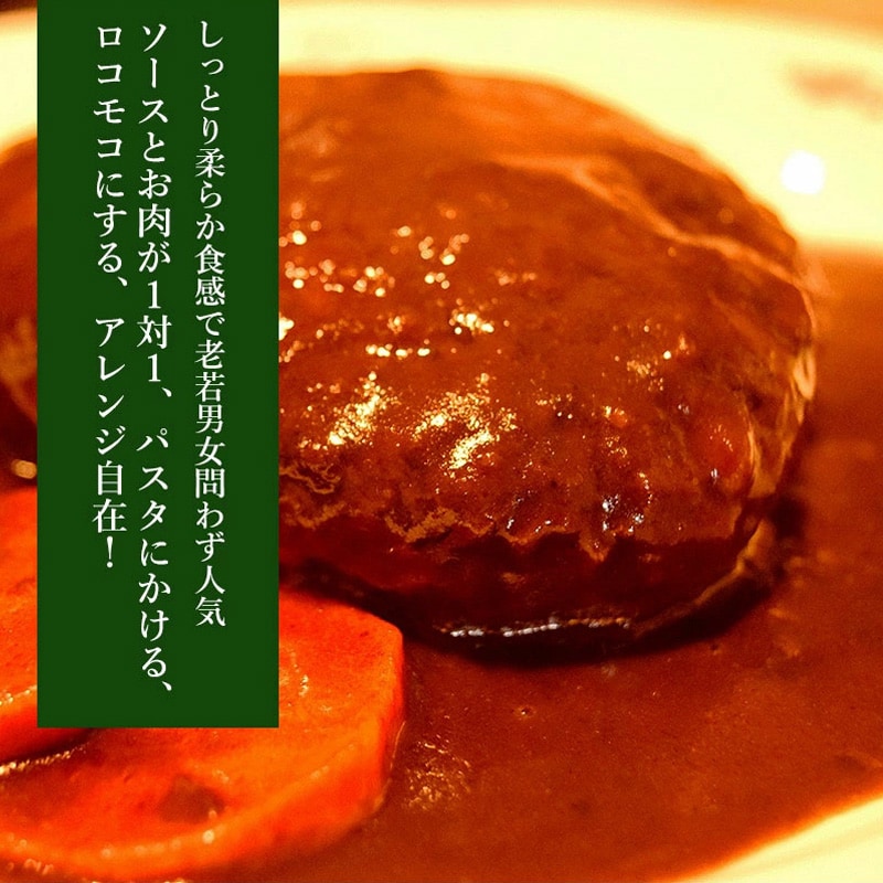 原材料 飛騨牛(岐阜県)、たまねぎ(国産)、つなぎ(パン粉、小麦粉、粉末状植物性たん白、乾燥全卵)、粒状植物性たん白、砂糖、食塩、しょうゆ、香辛料/加工デンプン、調味料(アミノ酸等)、カラメル色素、ソース[デミグラスソース、動物油脂、トマトケチャップ、トマトペースト、小麦粉、水あめ、しょうゆ、ウスターソース、ビーフエキス、バター、食塩、香辛料、砂糖/調味料(アミノ酸等)、カラメル色素、香辛料抽出物、香料、増粘剤(キサンタンガム)、甘味料(甘草)]、(一部に小麦粉・乳成分・卵・大豆・牛肉・豚肉・鶏肉・ゼラチンを含む)