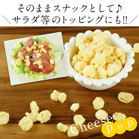 品質の高いオランダ産エメンタール、ゴーダ、チェダーチーズをカット、乾燥させた後にポップする。しかも嬉しいノンフライ!!!この独自の革新的な製法により濃厚なチーズの風味はそのままに仕上がるのです♪