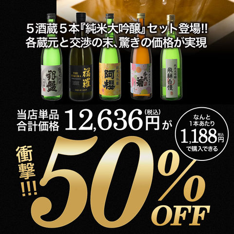 日本酒 飲み比べ 50%OFF 全国 お歳暮【送料無料】5酒蔵の純米大吟醸 720ml 5本組セット[原酒1本入り][単品合計価格より50%OFF!11,880円⇒5,940円!]プレゼント 家飲み【7営業日以内に出荷】