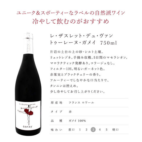 | 【お届けについて】 配送方法:冷蔵のみ 【冷蔵】便でお届けします。 ※他商品との同梱不可。1商品1配送でお届けします。 【備考】 ※写真はイメージです。実際にお届けの商品は形状やパッケージが異なる場合があります。 ※ナチュールワイン特有の香り、味わいがある場合がありますが、品質に問題はありません。 ※濾過、清澄を行っていない商品は澱が沈殿する場合がありますが、品質に問題はありません。澱を確認した際は、ボトルを揺らさないよう、ゆっくりとグラスに注いでください。 ※酸化防止剤(亜硫酸塩=SO2)無添加のワインでも、ごく少量自然生成されることがあります。 |