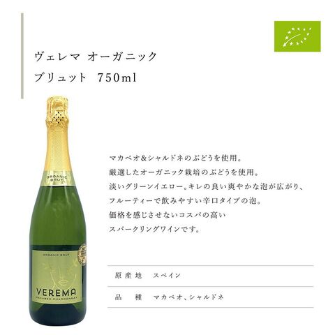 | 名称 全部 オーガニック認証ワイン オーガニック スパークリングワイン 5本セット 商品詳細 5本すべてオーガニック認証を取得したスパークリングワインです。 さらに、ヴィーガン認証を取得したワインが入ります。 すべて辛口で、飲み易く、お料理との相性も良いオーガニックワインを厳選しました。 オーガニックワイン初心者の方にもお気軽にお楽しみ頂けるセットです。 セット内容 ■ヴェレマ オーガニック ブリュット マカベオ&シャルドネのぶどうを使用。厳選したオーガニック栽培のぶどうを使用。淡いグリーンイエロー。キレの良い爽やかな泡が広がり、フルーティーで飲みやすい辛口タイプの泡。コスパ高い旨安スパークリングワインです。 原産国 スペイン 品種 マカベオ、シャルドネ ■カルメーラ シャルドネ オーガニック ブリュット オーガニック認証(CAAE、SHC)を取得した辛口スパークリングワイン。有機栽培のシャルドネを100%使用。淡いイエローの外観に、滑らかで繊細な泡立ち。グレープフルーツの皮やレモンといった柑橘系果実の香りと、フレッシュな果実の味わいが広がります。果実の旨味と、すっきりとした酸味のバランスが良く、飲み易い辛口スパークリングです。 原産国 スペイン 品種 シャルドネ 100% ■モンサラ カバ ブルット オーガニック オーガニック認証(CCPAE)を取得したスパークリングワイン。極力自然に近い農法を実践、且つ、高品質のワイン造りに定評のあるバルディネット社の造るカバ。レセルバクラスの長期熟成を経た本格的なスタイル。辛口ながら独特の上質で柔らかな口当たりときめ細かい泡が特徴で、食事にもとてもよく合います。 原産国 スペイン 品種 シャレロ、マカベオ、パレリャダ ■ボデガス ラトゥエ クリアリー オーガニック フリッツァンテ オーガニック認証( ユーロリーフ )、 ヴィーガン認証 を取得した微発泡辛口スパークリング。ワイナリーのモットーは、オーガニックで育ったブドウの品質を損なうことなくワインとして表現すること。白い花や桃、ブドウ本来の甘みを含むアロマに、ハーブやオレンジゼストを感じる味わいです。口当たりの良い泡立ちはお料理の楽しさを引き立ててくれます。 原産国 スペイン 品種 ソーヴィニョン・ブラン、アイレン ■ブリッコ アル ソーレ オーガニック スプマンテ オーガニック認証( ユーロリーフ )。イタリアの老舗ワインメーカーが、オーガニックワインの専門チームを作り、ブリッコ・アル・ソーレのオーガニックラインを生み出しました。明るく輝きのある、やや緑がかった麦わら色、熟したリンゴのフルーティなアロマがブリオッシュのような優しいイースト香に寄り添います。非常に調和のとれた味わいで、心地よい余韻が長く続きます。 原産国 イタリア 品種 ピノ・ビアンコ、シャルドネ ※オーガニックワインでも、日本の基準値内での酸化防止剤などの添加はありますので、予めご了承ください。 セパージュ 商品ページ内に記載 内容量 750ml×5本 保存方法 直射日光を避けて冷暗所で保存してください。 原産国名 商品ページ内に記載 輸入者 日欧商事株式会社 東京都港区芝3-2-18NBF芝公園ビル4F マルカイコーポレーション株式会社 大阪府大阪市西区京町堀1丁目18-5 株式会社ノルレェイク・インターナショナル 神奈川県横浜市中区相生町6丁目104 株式会社ヴォガ・ジャパン 神奈川県横浜市港北区新横浜3丁目18-9 株式会社徳岡 大阪市中央区南船場3丁目5番25号 |