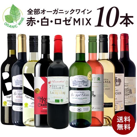 全部 オーガニックワイン 赤白ロゼ MIX 10本セット [W][WT60] ワインセット 赤ワイン 白ワイン 金賞ボルドー オーガニック認証 ヴィーガンワイン入り オーガニックワイン 【送料無料】【7営業日以内に出荷】 父の日 ギフト オーガニック・有機