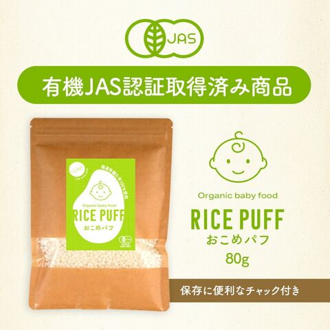 国産有機白米100% おこめパフ 80g×2【7営業日以内に出荷】[メール便]【送料無料】有機JAS オーガニック 離乳食 幼児食 国産 有機 白米 無添加 ベビーフード