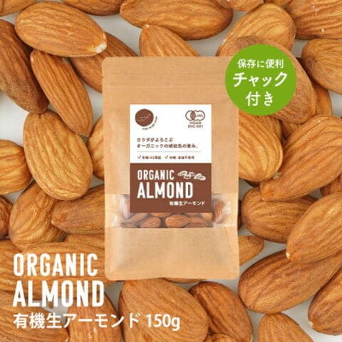 有機生アーモンド 150g [メール便]【送料無料】【7営業日以内に出荷】アーモンド 生アーモンド 有機JAS 有機ナッツ オーガニック オーガニックナッツ 食塩不使用 無塩