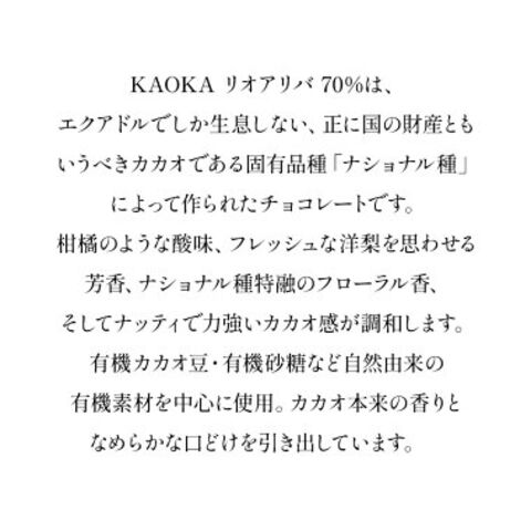 KAOKA リオアリバ70% 1kg オーガニック ダークチョコレート 有機JAS認証取得[常温/全温度帯可]【送料無料】【7営業日以内に出荷】