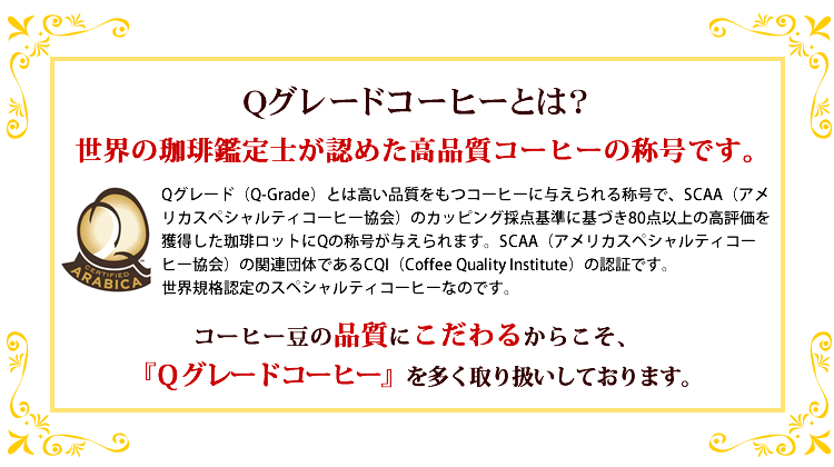 世界の珈琲鑑定士から高い評価を得たコーヒーの称号Qグレードスペシャルティ珈琲をたっぷり約200杯分入り!選りすぐりのQグレードスペシャルティコーヒーで、楽しみと幸せを感じてみませんか?