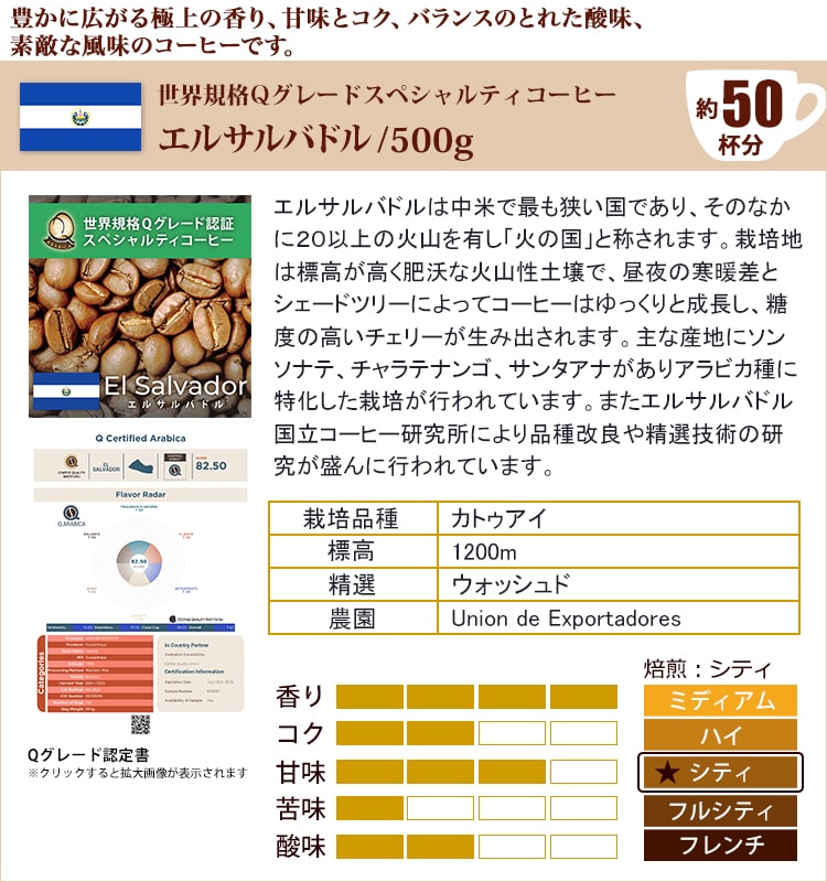 ■エルサルバドル世界規格Qグレードスペシャルティ珈琲豆/500g入袋