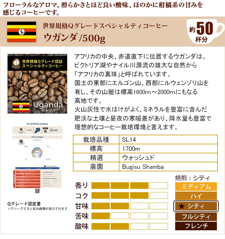 ■ウガンダ世界規格Qグレードスペシャルティ珈琲豆/500g入袋