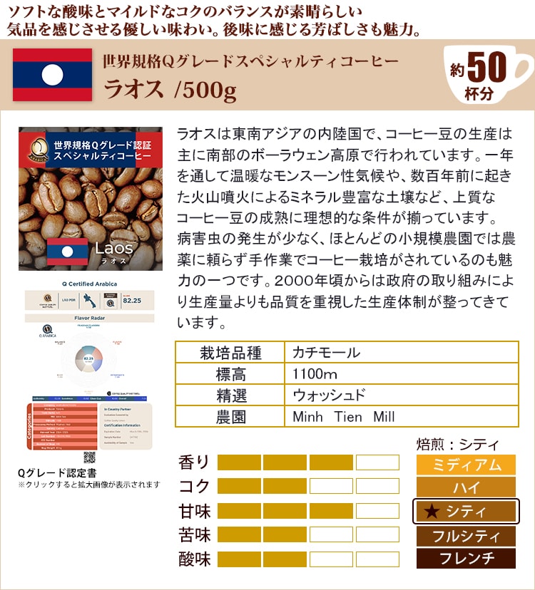 ■ラオス世界規格Qグレードスペシャルティ珈琲豆/500g入袋