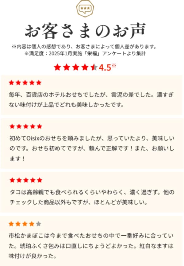 ・満足度97%以上のおせちです。※2024年1月Oisix実施アンケート結果より