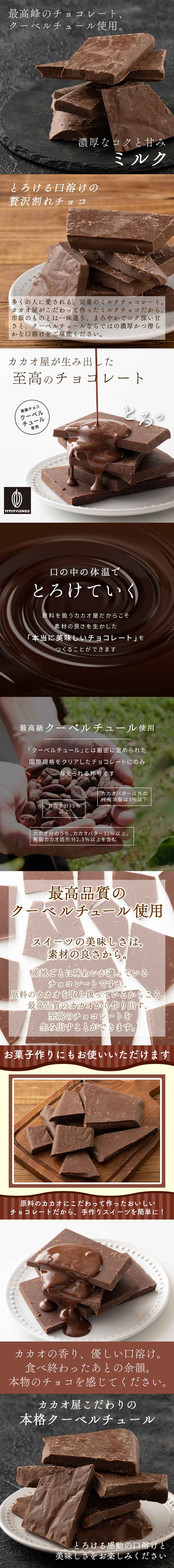 【1440g(180g×8)】割れチョコ(ミルク) | 本物のクーベルチュールならではの上品な甘さまさに"ぜいたく"な逸品!!