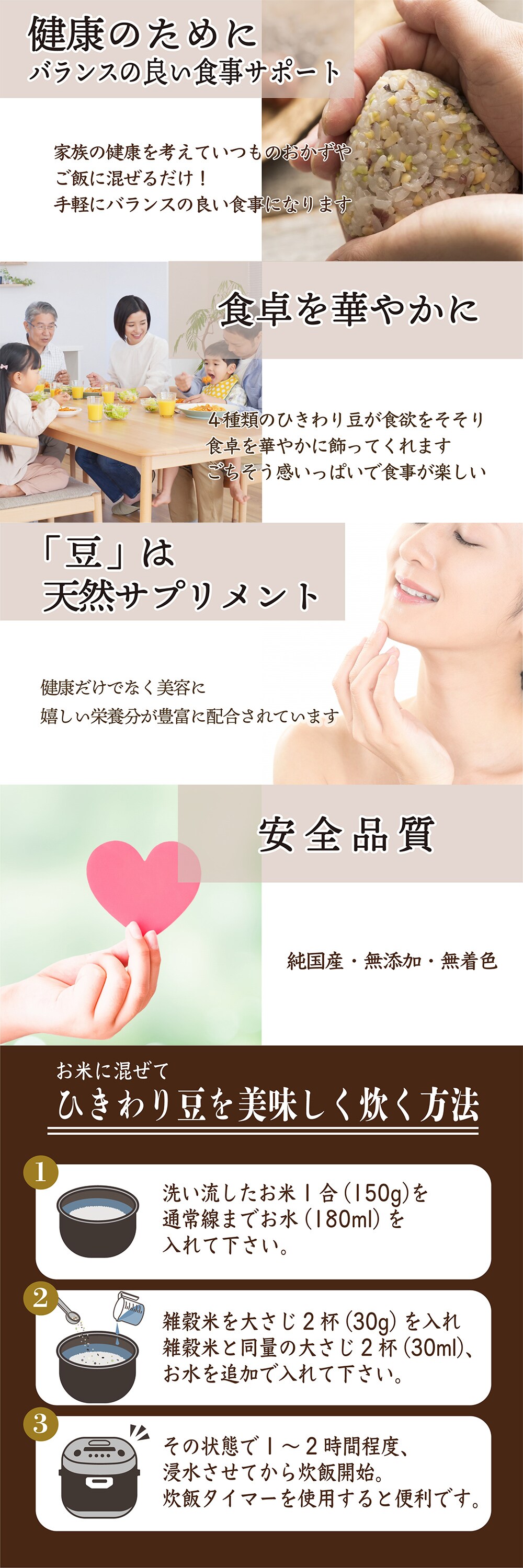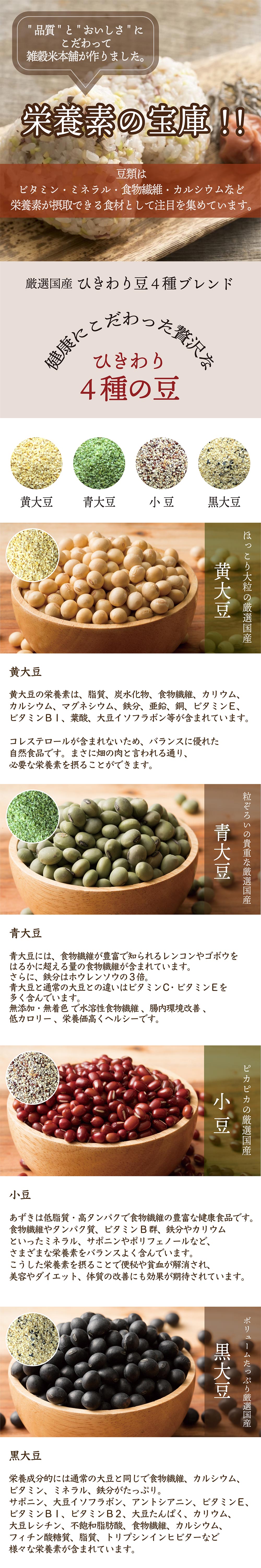 ・原材料/材質/素材:黄大豆、青大豆、小豆、黒豆