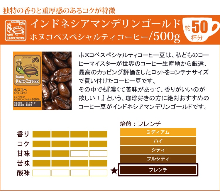 ◆インドネシア・マンデリンゴールドコーヒー/500g