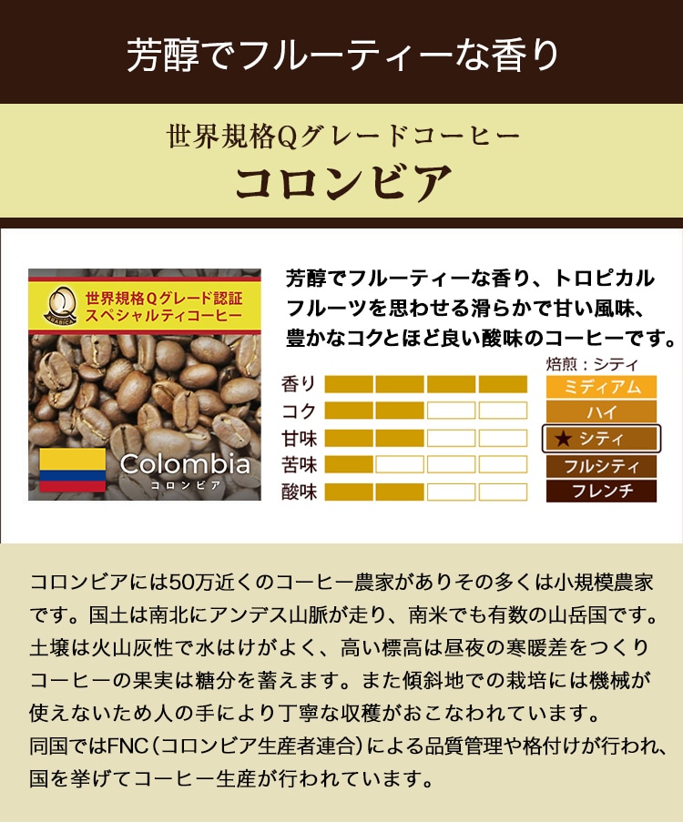 ■コロンビア世界規格Qグレードスペシャルティ珈琲豆/500g