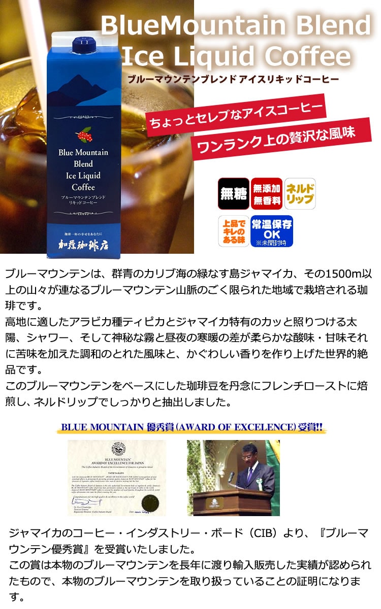 【計12L(1L×12本)】ブルーマウンテンブレンドアイスリキッドコーヒー(無糖) | ブルーマウンテンを贅沢に使用しました!
