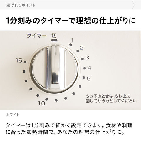 タイマーは1分刻みで細かく設定できます。食材や料理に合った加熱時間で、あなたの理想の仕上がりに。