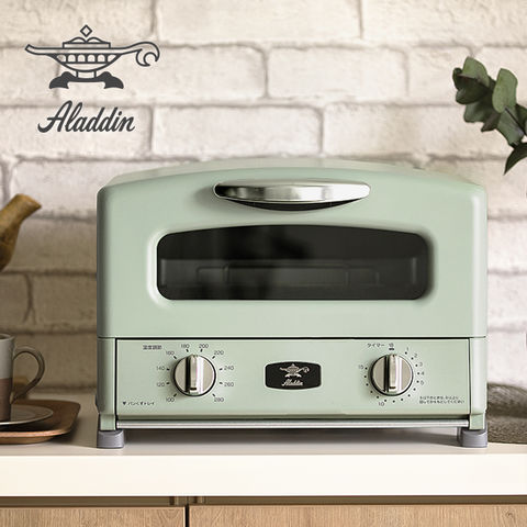 【1年保証】 Aladdin アラジン トースター 4枚焼き グリーン おしゃれ 送料無料 オーブントースター グラファイトトースター 遠赤グラファイト グリルパン 小型 コンパクト 一人暮らし レトロ AGT-G13A(G) 【グリーン】 小型商品(ヤマト)
