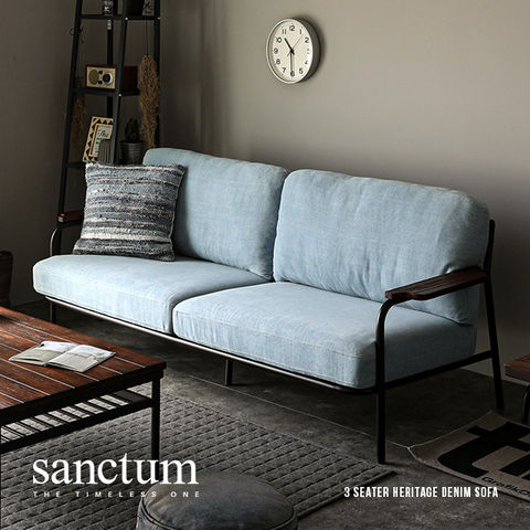 ソファー ソファ 送料無料 3人掛け 三人掛け デニムソファー デニムソファ デニム おしゃれ ヴィンテージ ビンテージ アンティーク 西海岸 ブルックリン 北欧 レトロソファ リビングソファー アイアン 脚 一人暮らし【ブリーチデニム】 中型商品-2