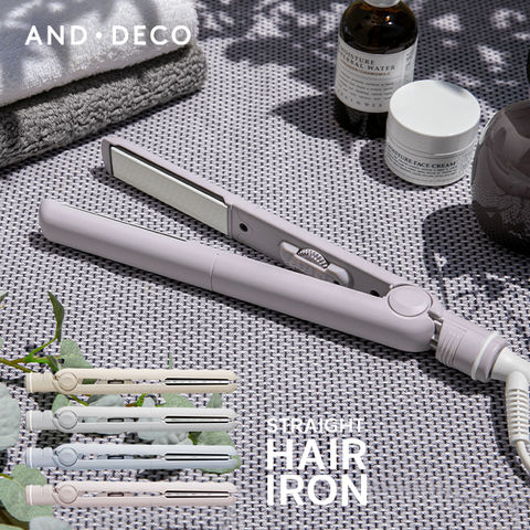 【1年保証】 ヘアアイロン ストレート ストレートアイロン マイナスイオン 瞬間50秒 海外対応 プロ仕様230℃ 専用ポーチ付 ヘアーアイロン AND・DECO アンドデコ 【ライラックグレー】 小型商品(ヤマト)