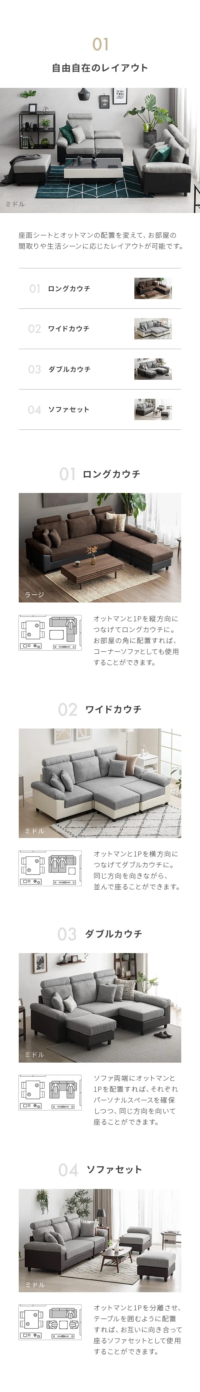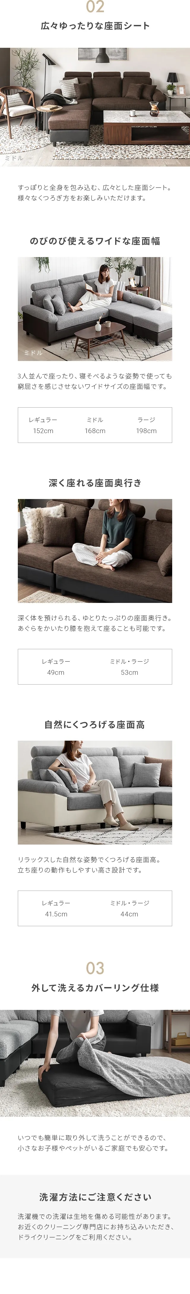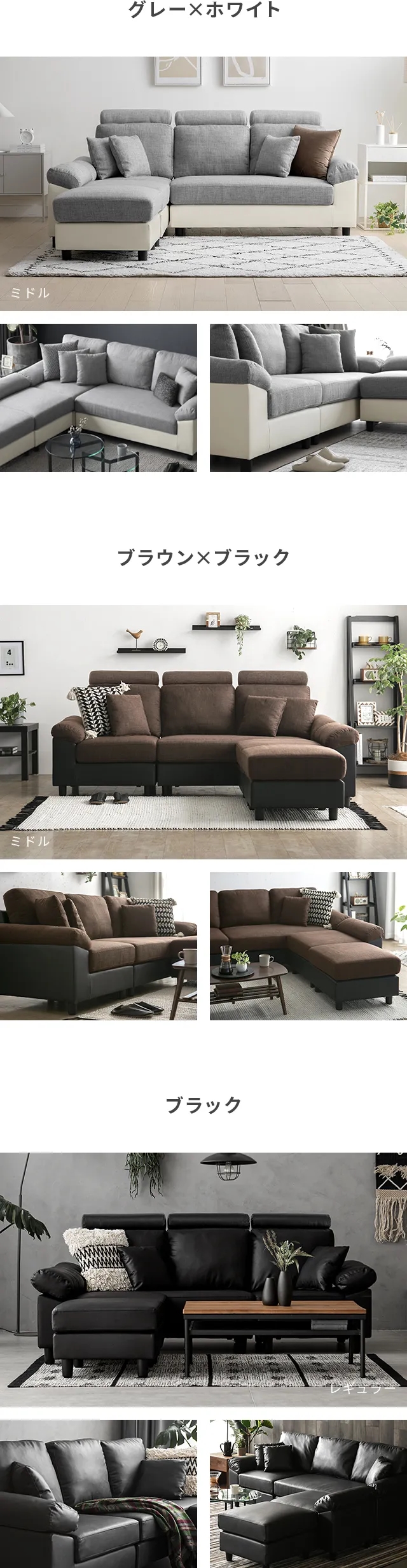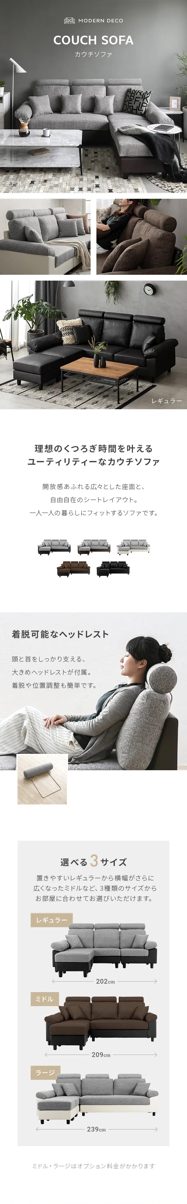 ソファ ソファー ヘッドレスト付き 3人掛け 幅213cm 送料無料 カウチソファー コーナーソファー L字型 ソファーセット ソファセット レザー 革 皮 カバーリング オットマン付き おしゃれ 北欧 三人掛け SOFA【レギュラー/グレー×ブラウン】 大型商品-1