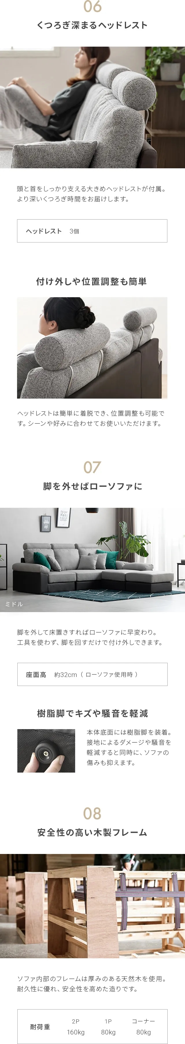 本体:木材/ポケットコイル/ウレタンフォーム/ウェービングテープ/Sバネ/金属パイプ(ヘッドレスト)