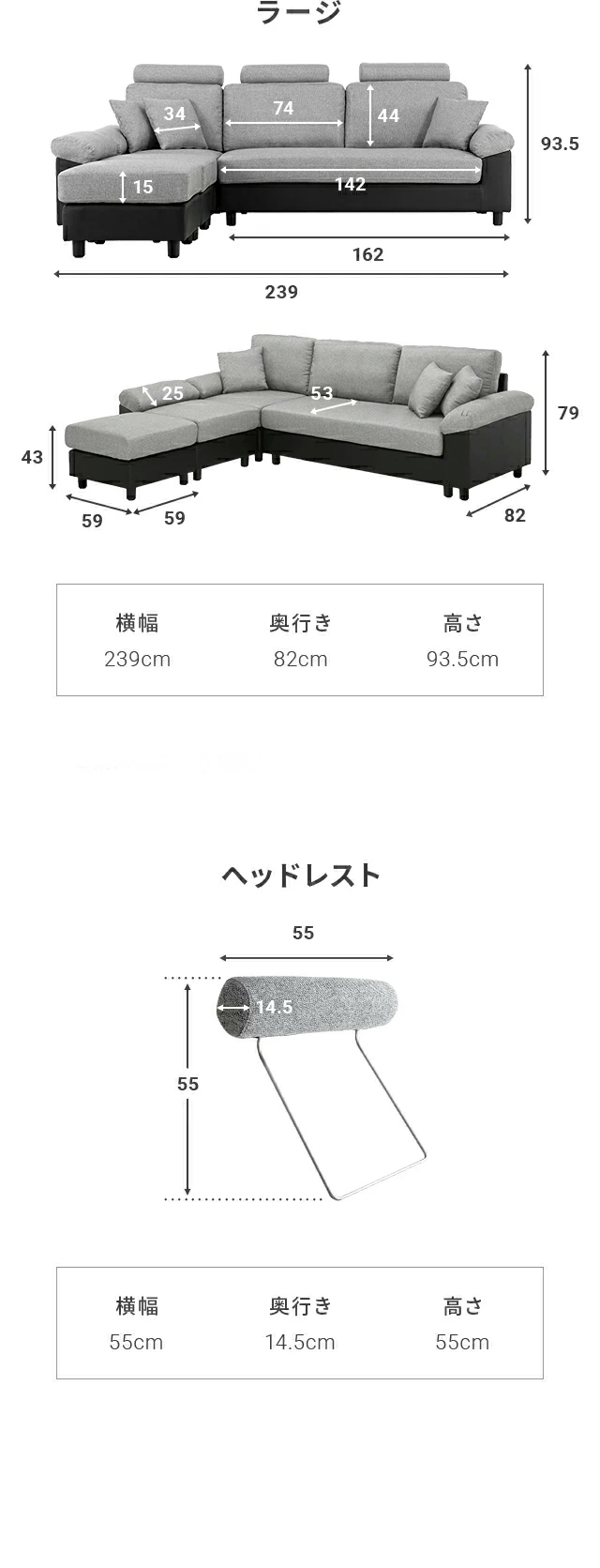 ヘッドレスト:幅550×奥行き145×高さ550(ヘッドレスト部:直径145)mm