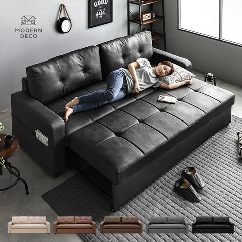 ソファーベッド ソファベッド 3人掛け 幅218cm 送料無料 ソファー ソファ ソファーベット レザーソファー リビングソファー カウチソファー 3人掛けソファー 2人掛けソファー 折りたたみ 収納付き おしゃれ 北欧【PVCブラック】 中型商品-2