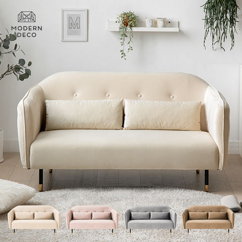 ソファー ベロア素材 丸みのあるデザインと真鍮風の脚がカワイイ 2人掛け ソファ おしゃれ 1.5人掛け かわいい リビングソファ ダイニング ベロアソファ【ベージュ】 中型商品-2