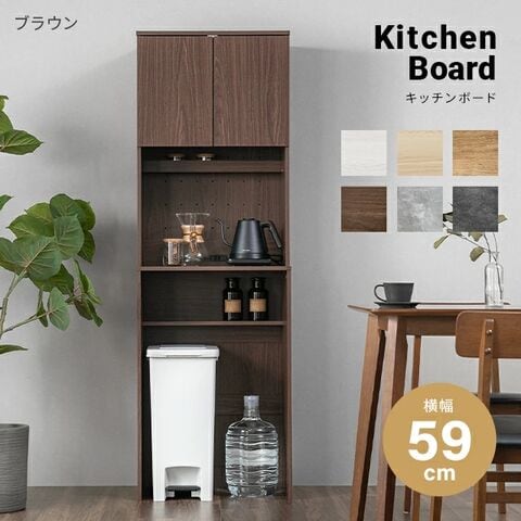 レンジボード 食器棚 キッチンボード 組合せ自由 幅59cm ゴミ箱 上 収納 収納棚 キッチン収納 2口 コンセント レンジ台 カップボード スリム ハイタイプ 木製 キャビネット 扉付き 北欧 チェスト 大容量 収納家具 おしゃれ【ブラウン】 小型商品(佐川)